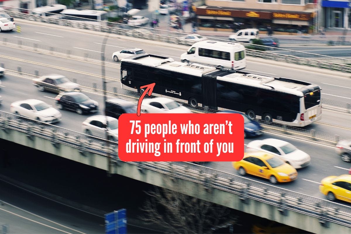 The more people riding public transit, the fewer people clogging the roads in front of you.